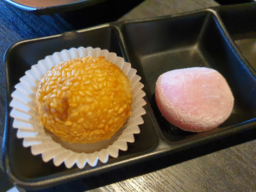 Food: 2/5 Variety of food options is good Cooked food from the self-serve buffet station was not bad Like: Butter Fish, Enoki Mushrooms, Smoked Duck, Seaweed Salad, Japanese steamed egg (Chawanmushi), Miso Soup, Sesame Balls (Goma Dango) Some of the raw meat and seafood had light miso seasoning. It was not enough to give them great taste. Prawns and mussels were not fresh unfortunately. Prawns were a bit black. Mussels had an off-taste. Pork belly were strangely chewy, even though they were thinly-sliced. Saba (mackerel) pieces still had fins on them. Unfortunately, none of the meat and seafood was amazing. Freshness of the meat and seafood needs improvement.