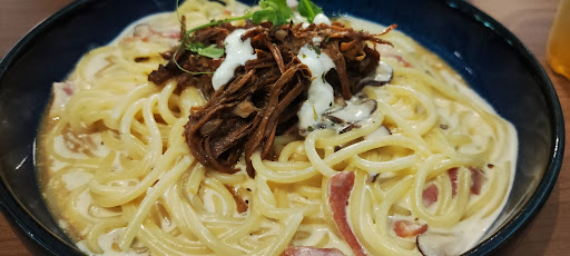 The food is overall decent with a standout being the pulled beef carbonara like many fellow reviewers have mentioned. It's definitely on the saltier side but it's creamy, light and filling, great 😃👍!