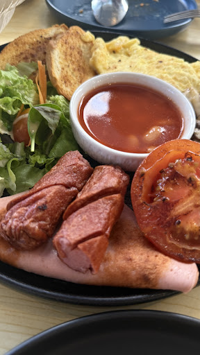 Big breakfast - the oil used has gone rancid, the tomatoe was no good, the dressing for the salad was sweet. The spaghetti - too heavy handed on the sugar. The TomYam - from packaged paste, rather salty. The garlic bread were super salty.