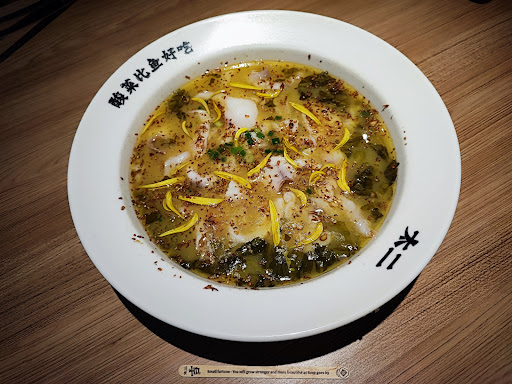 The star dish looks inviting. Delicate and fresh filleted fish swimming in a sour but flavoursome rich broth. The suan cai (pickled mustard greens) provides the tanginess flavour and balances out the oilyness of the broth. The best way to eat it is to take a spoon of rice and place the fish and greens on it and ummm... Your eyes light up as your brain tries to fathom what heavenly food you're eating.