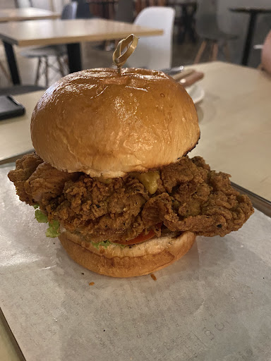 We ordered many items, and highlights are the char siew burger, mushroom soup, truffle fries , and their many waffle combos. My personal choice, as recommended by the attentive and helpful staff, was the Salted Egg chicken burger. It did not disappoint! Pro-tip, maybe don’t wear a white T-Shirt as you might be so distracted by the taste nirvana of the burger that you end up wiping your hands on yourself. If you are not making a mess, you are not enjoying yourself. Will definitely come back next visit as I also heard great things about the...