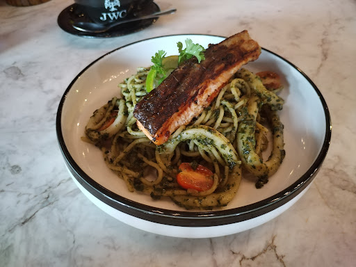 Used chicken popcorn for their fried chicken bowl, that's just lazy, resulting in a very dry dish. At least a fried chicken cutlet would've been better, and the rice was hardly warm. The salmon spaghetti was alright, though they could just ditch the flavorless squid ring, it's unnecessary. The chocolate drink is alright too.