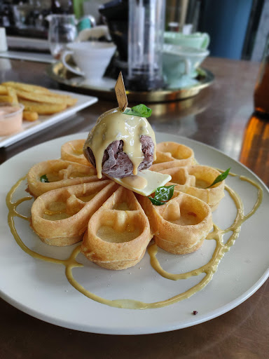 Probably the most underwhelming of the 3. The waffle was a tad plain in flavor. The waffle usually goes with vanilla ice cream but they ran out so they gave us chocolate. Would have preferred a more compact and dense waffle. The salted egg yolk drizzle was a bit light as well.