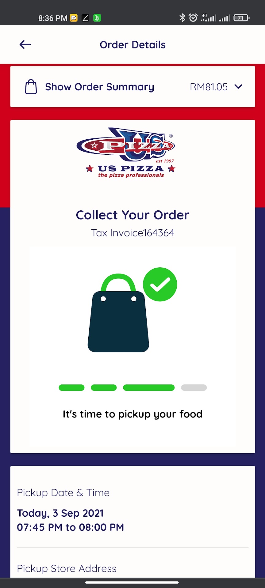 Ok fine. I decided to order thru online and chosen the pick up at Subang SS15 outlet. I reached the outlet on time @ 7.45pm, went in straight to the counter and showed the staff my order details. One of the staff confirmed my name by the receipts, while the other staff are packing the orders beside. But nothing is pass to me so i assume my orders are not done so i went outside to wait.