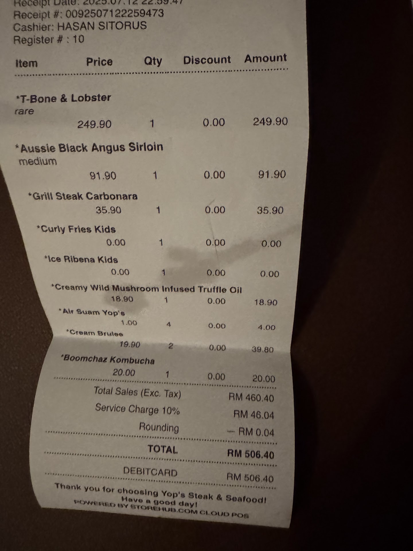 Australian Angus Sirloin — Not Steakhouse Quality Another letdown. We asked for Medium, but were served Well-Done. It completely ruined our appetite after waiting for more than an hour. The steak was also very thin, which made it even less satisfying. Honestly, if a steakhouse can’t get the basics right — cooking temperature and thickness — then it doesn’t deserve to be called a steakhouse.