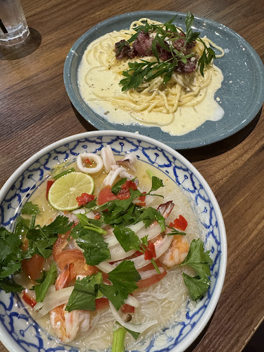 The fried banana in the picture is sooo good and sweet when served hot. The only food that could be better is the glass noodle seafood salad. Seafood is generous but the sauce ran a little too sweet for my liking.