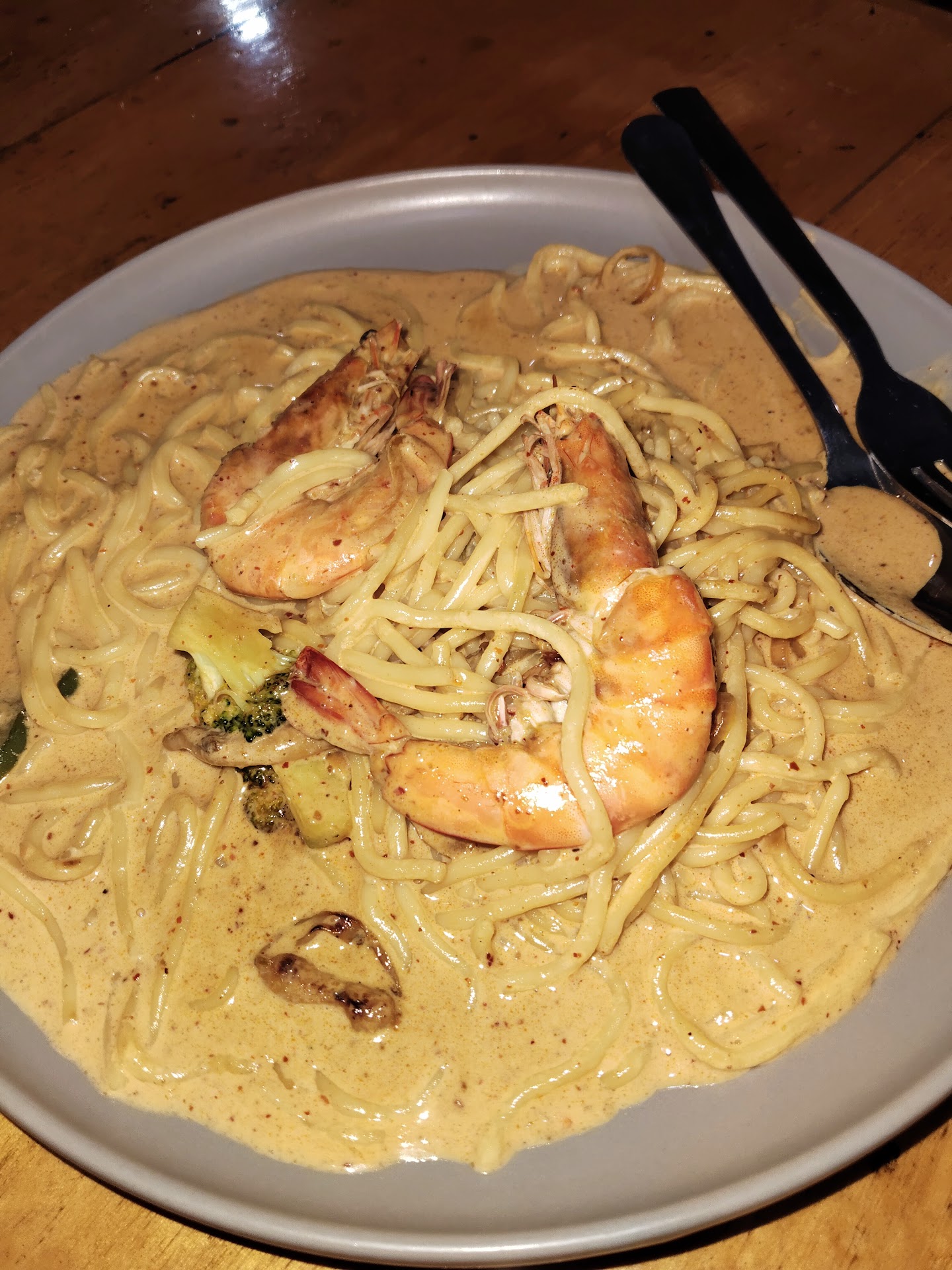 Service could use some improvement. The staff placed the food at the far end of the table, and I had to reach over to get it—considering the table was quite large, it would’ve been better if the food was placed closer, as is standard in most cafés or restaurants.