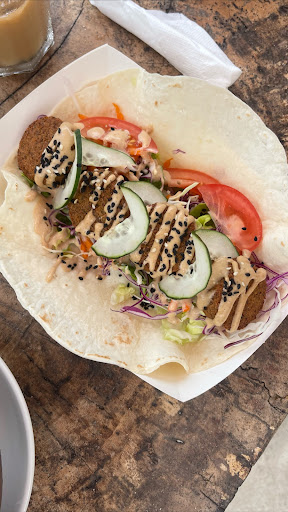 You have to order at the counter, and although the staff wasnât unfriendly, the food took longer than expected considering what we ordered and how busy it was. We had a falafel wrap and a smoothie bowl. The wrap was tasty, but the smoothie bowl didnât impress usâthere are better ones along the same beach.