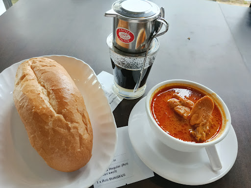 Makanan dan Minuman Seperti biasa, saya tidak melepaskan peluang untuk mencuba signature dish mereka, iaitu roti dan kari ayam bersama kopi Vietnam. Mereka juga menawarkan sandwic, Vietnam roll (popia Vietnam), dan kuey teow sup.