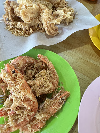 My first time here! Came here (on wednesday,4.30pm) there was a long queue. Its just like what we expected as we looked up on tiktok beforehand. This place was indeed busy/crowded due to it being famous. I personally think their service was great. Firstly you have to line up and the staff will give you a number & theyāll show u your table. Then, u sit at the table and u must wait. They will call your number that the staff has given just now. In the meantime u can go to the drinks/beverages counter, line up there and order ur drinks. They will quickly prepare it on the spot it took like 1 min (i ordered iced tea & coconut drinks). So back to the table u have to wait patiently bcs they want to make sure itās systematic. They dont want the food counter become too packed & chaotic. Later they will call your number very clearly so u head over to the food counter and thats when u take the huge tray and choose what u want. They prepared on the plates so u can just take it or ask for it. In my case, the celup tepung sotong (fried calamari) was not hot as the food had already been prepared there. But then the celup tepung udang (prawn deep fried) had already finished so i got the ones that are freshly cooked. So it was very hot. Then thereās also deep fried fish & others. Afterwards, u can directly bring the food u have chosen to ur table. U can make payment after eating all ur food. Quite efficient. Donāt worry the staff are friendly you can just ask if youāre not sure of the things there. Oh and i think it was very affordable. The taste of the food & sauce matters the most. Overall it was a great experience, iād come back here. Additionally, i like how this warung is located in front of the sea or the beach. U can cross the road to check it out. Extremely beautiful. (Parking can be limited btw so u gotta be patient, slow down and find ur...