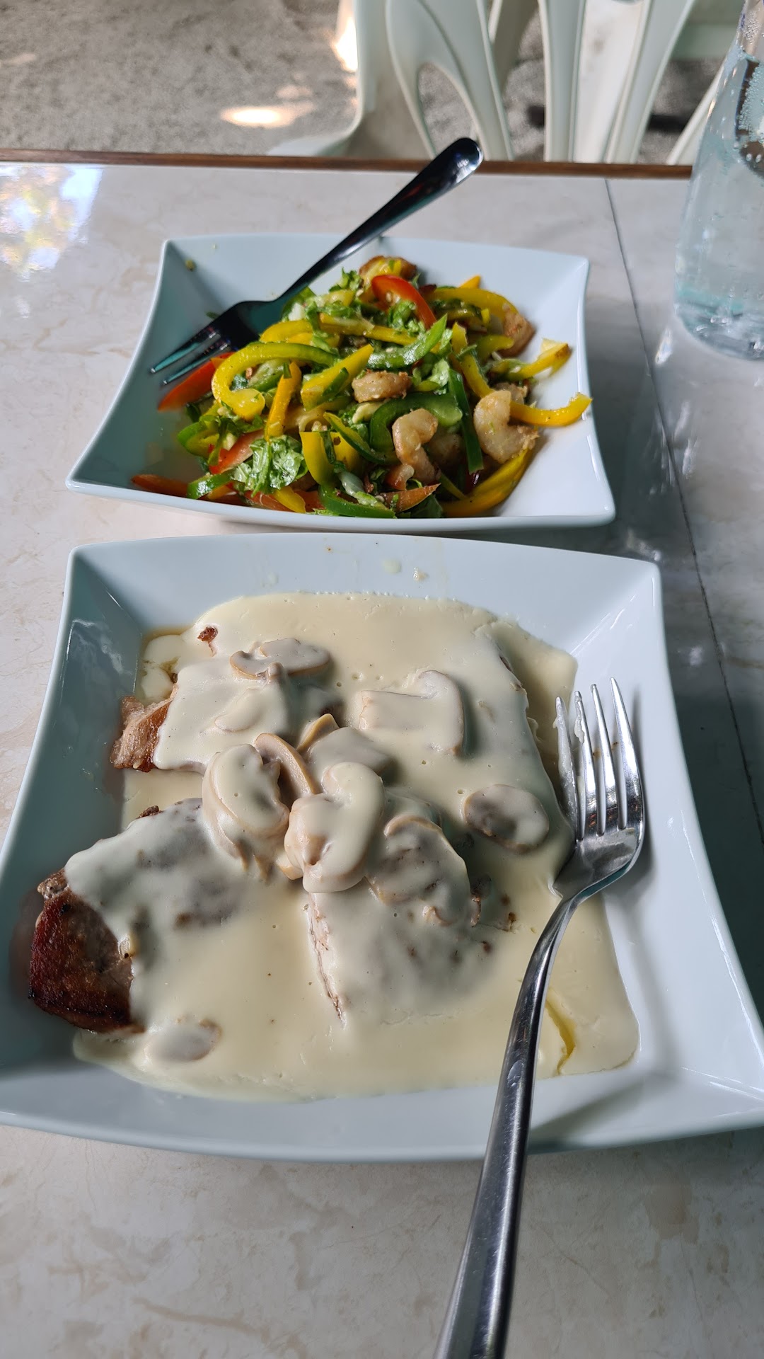This place was recommended to us for the good seafood. To be honest, the taste of the seafood was good. But that’s basically all I can say positive about this place. The atmosphere was terrible with some greenish light and strange noises from a pump from the neighbours. We asked the waiter what he can recommend for us (3 adults and one child). He offered the seafood platter and grilled vegetables to share. After roughly half an hour we got the food. The portion was enough for one person. The price suggested a portion for all of us. Maybe it was just bad luck for us but I can’t understand all the good reviews. We went to another restaurant by the beach afterwards to have at least a nice...