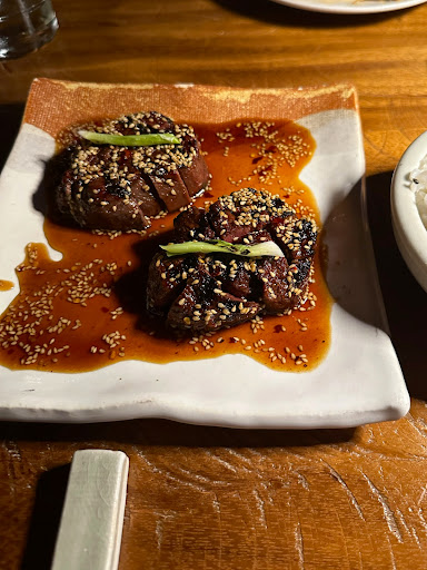 Wow, this is best Japanese restaurant we have ever been to. We had top notch service and food. We ordered the chilli lemon chicken tempura (tori tempura), the Yakisoba, the spicy beef tenderloin, and the white rice. The chilli lemon chicken tempura had a lot of citrus, but in a good way, along with a nice bite of chilli, it was very good. The Yakisoba was very flavorful with its assortment of tasty vegetables. The spicy beef tenderloin was the biggest “wow”——it was so tender and filled with delicious flavor. We decided to also take a look at the dessert menu and had a dish that was a cake with chocolate and coffee miso ice cream, and it was absolutely delicious. Our server was so warm and all the other staff who came by were very friendly as well. We had a beautiful view of the water from our table and got to see fish and stingrays go by. You must eat here when staying at...