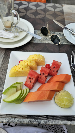 The breakfast was exactly how I imagined it, fresh and satisfying. Although they don’t usually serve plain croissants, they kindly made some upon request, which I found really thoughtful and attentive. The café latte and fruit platter were beautifully presented, playful and creative, which made me even more excited to eat, and the taste definitely did not disappoint! Everything was fresh and delicious. And the view! Amazing !