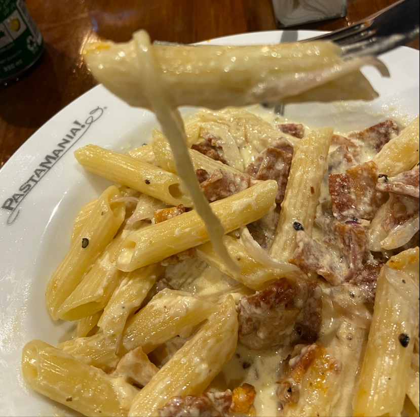 Unfortunately, the food was very disappointing. Both my husband and I ordered different dishes, but neither tasted good. I ordered carbonara with penne pasta, but it came mixed with spaghetti, as you can see in the photo. The penne was also undercooked so hard it was barely edible. My husband’s dish didn’t taste good either.