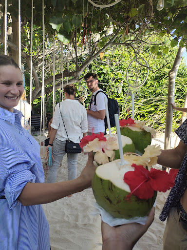 Read moreFruit shake and coconut bar directly at the beach, sometimes with chill music, with beautiful decorations and some swings. Mosquitos were hungry there, too, but if you move to the beach closer towards the water it was fine. They are happy to serve you there, too. Banana Papaya shake and coconut was delicious, and the girl running the shop is one of the friendliest I have met on the island, making the experience even better :) Greetings to her and good...