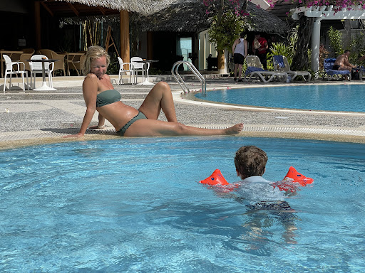 A better pool to get in/out if you have a disability. Not quite enough beds at certain times of day. The bar staff are very welcoming and attend to all your needs with a smile and alway have a chat if not to busy. Didn’t take them long to know our regular order and room number....