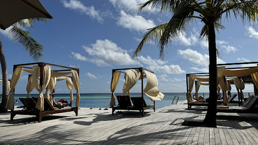 Una de las opciones de restaurante de mediodía en el resort The Residence Maldives at Dhigurah. Espectaculares vistas durante la puesta del sol, bonita piscina en línea con el mar, con tumbonas, camas balinesas y servicio de toalla incluido. Una buena opción donde comer para posteriormente disfrutar de un baño en la piscina con muy buenas vistas o de una buena siesta al aire libre. A partir de las 22.30h hay Dj. Nosotros estuvimos en temporada baja y había muy poca gente a esas horas pero es una opción animada para acompañar con una copa después de cenar. La comida está buena. Basada en menú con varios platos de primero y segundo y postres para elegir. Si acudes a este resort lo visitarás y lo disfrutarás. Cuidado con los mosquitos al mediodía. Os recomiendo echaros repelente para disfrutar de la comida sin demasiados...