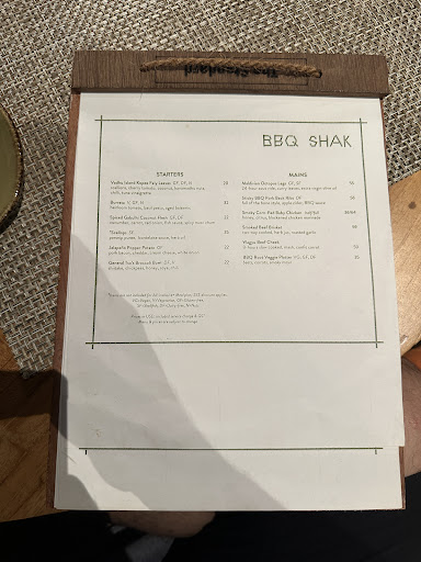 Read moreWe stayed at The Standard, Huruvalhi Maldives for 11 nights. We visited the BBQ Shak twice and on both occasions the food was amazing. Photos are from the 2nd visit. A special thanks to Shuarez the head chef here. Dinner right on the beach. We were all inclusive guests at the resort and everything we ordered was included, including the wine. Some items which are marked with an Asterix are extra. These were for high value items which we didn’t order as there was plenty of other items to...