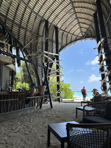 The fancier of the two main bars, the Haali bar is situated where the sunset is, with a really nice private sandbank.
