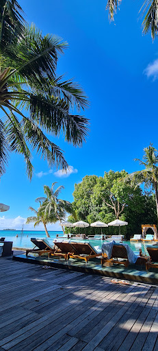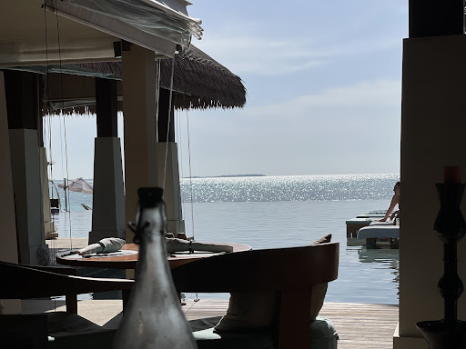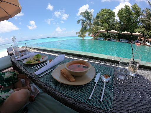 The place serves multiple purposes. It's one of the lunch options, beside Ocean Breeze it offers both lunches but here à la carte dining. The menu features Italian, Turkish, Indian, and Maldivian dishes. Additionally, there's a bar due to the main pool's presence (facing the sunset), featuring a DJ in the Wednesday afternoons. It serves as a night bar, too, with a DJ, light shows, a kids' disco, and Sunday movie screenings. Throughout the resort, there's attentive staff, notably Ali...
