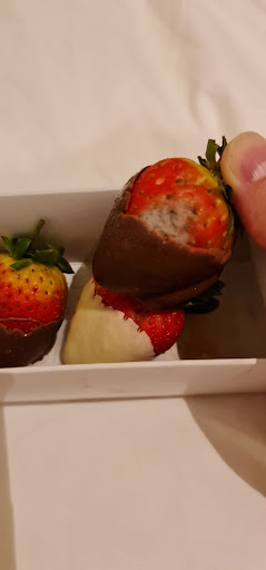 Compliment was strawbery with chocolate and mold...