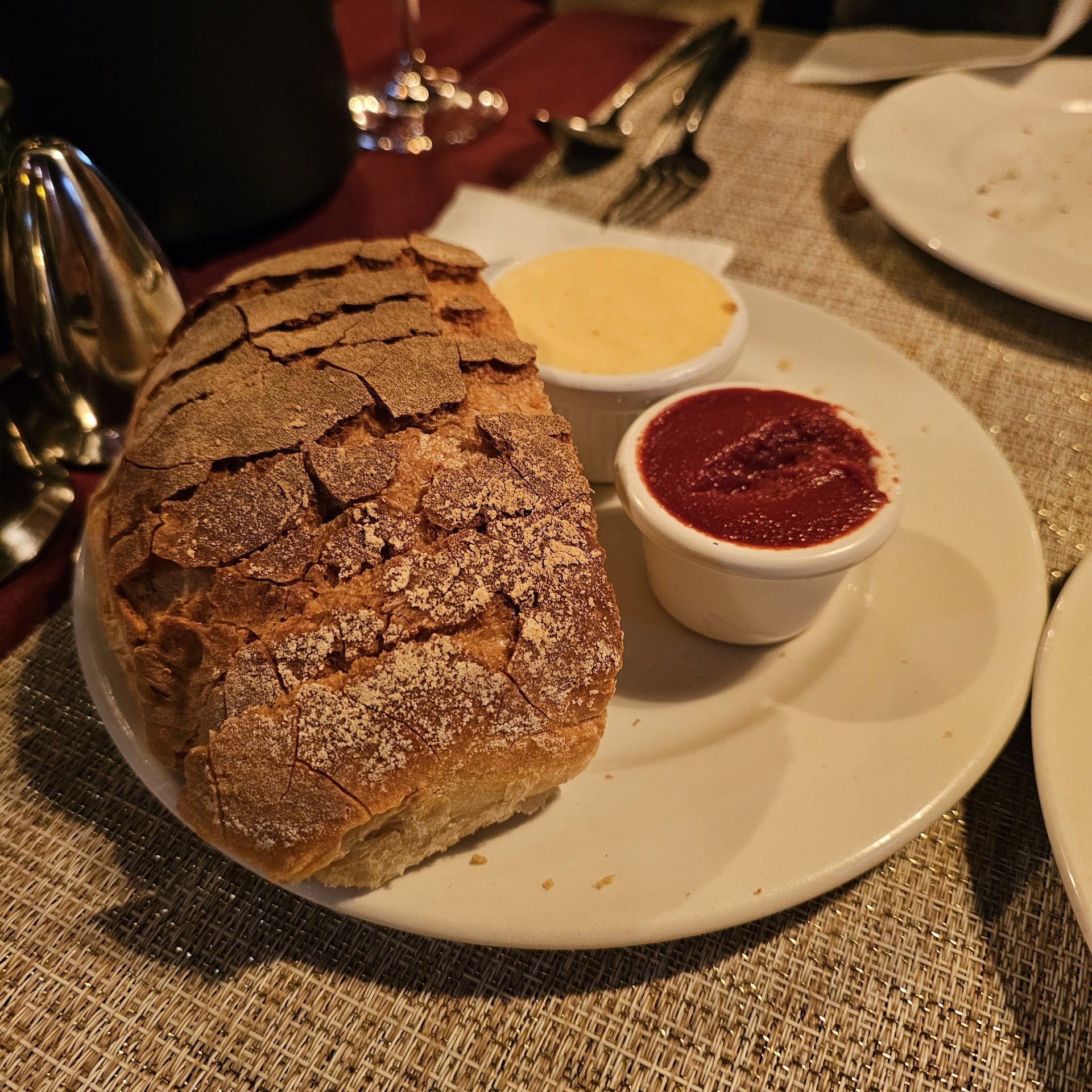 ย ย ย Read moreChose to come to this place based on all the positive reviews. Showed up and got told issues with the kitchen and to come back in an hour. Okay fine, went to a bar had some drinks and came back hungry. My wife ordered the horse stew and I order the suckling pig. Shortly after ordering we were given "complementary" bread with tomato paste and butter and a sausage soup. It was complimentary because of the ensuing long wait for our orders to arrive. My wifes dish was pretty good. Good portion and good flavor. Mine on the other hand was terrible. The pig had no flavor was not crispy and the only redeeming quality was the french fries. We were then given a complimentary dessert as well. The food here is alright. Not the best and just bland. Why I gave it 2 stars instead of 3 is that it seems VERY gimmicky. Basically our meal included bread, soup and dessert. I didnt really want any of those so knowing its built into the cost of my meal I would have preferred better quality of what i ordered. The dessert may have been local but also not exciting. Overall the food is okay nothing super special, service is slow, and u get "free" things like bread,...