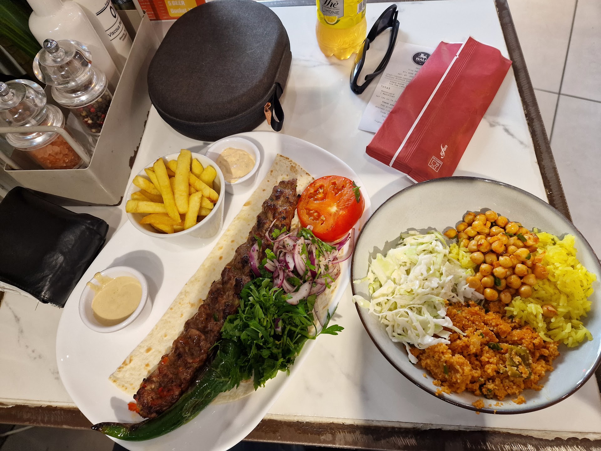 Then you choose 3 salads and 2 sauces to pair with the kebab and you take a seat waiting for your meal to arrive.