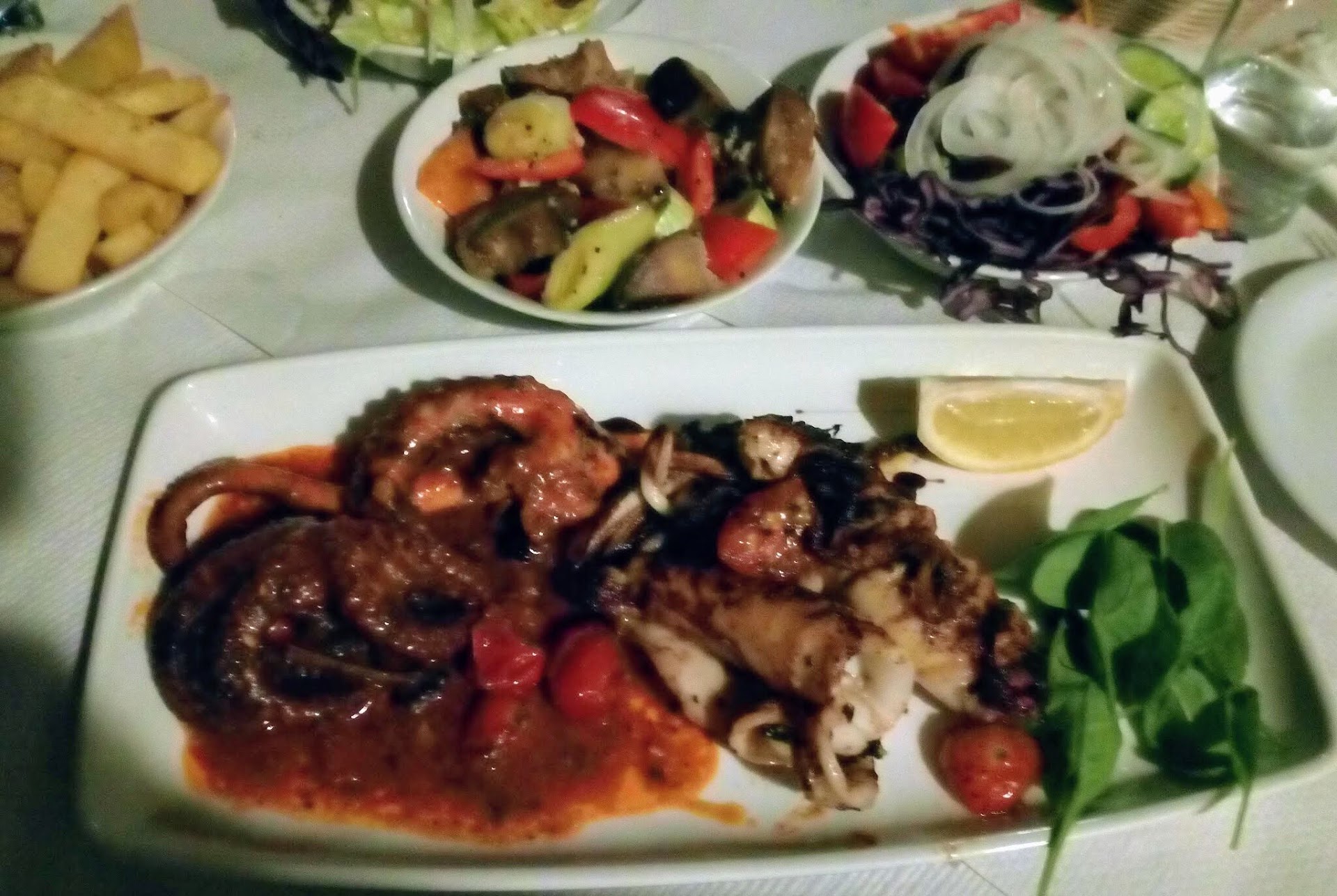 Recommendations: For fellow diners, we strongly recommend indulging in the seafood spaghetti. My husband had the rabbit which he enjoyed. The antipastas were delicious and the Maltese wine was great! We wanted the tirimisu but they didn't have that so we had a chocolate lava cake instead. We ordered a second one because it was so good.