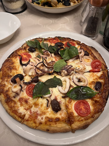 We started with an amuse-bouche from the house, which was confirmed to be gluten-free without me even having to ask! For starters, we had mussels and calamari, which were absolutely delicious. As mains, we chose gluten-free Pasta Frutti di Mare and a Calamari Pizza. Honestly – the best gluten-free pizza I’ve ever eaten! The pasta was just as wonderful. (The pasta portion shown in the attached picture is only the starter size, not the main course.) For dessert, we had a lemon sorbet, which was light, refreshing, and very tasty.