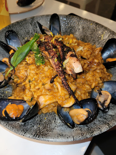 Anyway, I had arancini with squid ink and cuttlefish which was served warm. I liked it. I ordered a lamb burger as well but it was barely warmish. I did not like the seasoning of the burger. Tasted like a spicy sausage. It seemed to me the burger took a lot of time to be served once it was ready. I had a virgin colada drink. It tasted too artificial. I would give three stars but the dog scene forces me to...