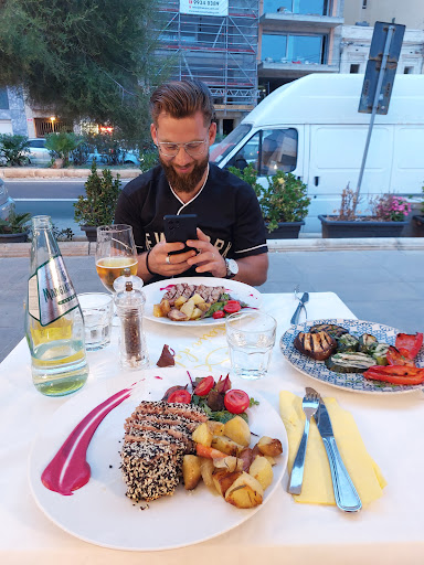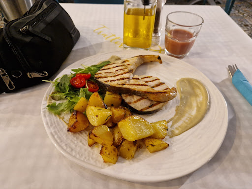 Read moreWe searched a few restaurants in a few towns and cities for tuna steak (i know, at the end of September, it's out of season), and this place was the only one that had it. We were adamant about trying for the first time in our life a proper, fresh from the sea tuna steak (not the canned or frozen ones). First of all, my husband has very distinct taste buds and feels if a food is starting to go bad (not like the rest of the group), so he isn't easily impressed. But this time, everything we ordered, he was happy with and speechless. We both ordered Tuna in sesame crust with roasted potatoes and one extra side of Grilled vegetables (zucchini, aubergine, and peppers). My partner asked if it would be possible to have his fish without the sesame crust (it was possible) so he could feel more intensely the taste of the fish. The roast potatoes and grilled vegetables were just perfectly done. Second of all, we were received with a smile and very kindly, they listened patiently to our questions about the menu and it's items, and even obliged to our requests (had to ask for the rest of the food for take away, as we filled up before with traditional pastries 😅). Last but not least, we received complimentary fresh bread to nibble with olive oil while waiting for the food. The location is right next to the sea, so there is a lovely view to enjoy with the food or drink. The waiters were very welcoming, and the prices in comparison to quantity and quality...