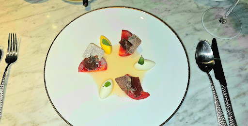 The dining room was freezing. We walked in and immediately reached for our extra layers—because yes, we came prepared for a summer evening, not an arctic dinner. Over the course of nearly three hours, the cold became unbearable. We actually had to stop the tasting midway because we simply couldn’t sit through another course in those conditions.