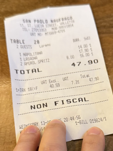 Ā Ā Ā Read moreIf I could rate this 0 stars I would. This was our last meal in Valletta before coming home and was really hoping for a good meal. Never happened. When me and my sister arrived it looked amazing and had good reviews so we decided to eat here. Terrible decision. We ordered "garlic bread with mozzarella" and a lasagna each with soft drinks. The soft drinks tasted very watered down when they arrived. Then the garlic bread came out. It didn't have Mozzarella on, it was some sort of spread and the bread was really dry. The spread was disgusting, didn't taste like garlic at all either. My sister ate one slice and I had a couple of bites. Then the lasagna came out. It was okay. Too sweet really and not enough tomato. It didn't really taste how you would expect a lasagna to taste. My sister didn't like it at all. The waitor came over and saw we hadn't eaten much but didn't say anything. My sister asked was that the garlic bread and he said "yes, you didn't like?" My sister said no. He just walked away. We asked for the bill and when it came out they still charged us full price for everything. Even though we clearly left over half of what we ordered. There was 3 out of 4 slices of garlic bread left, about 3 quarters of my sisters lasagna and half of mine. Clearly didn't enjoy the food. The atmosphere also wasn't great as we were seated right next to the road and everyone was queueing and standing right next to us and it felt like we were being watched by them while we were eating. Not a very pleasant experience. The only good thing is there was a nice view of the street and out to the water. Would not go there ever again. Service terrible they didn't even apologise for the garlic bread when we told them we...