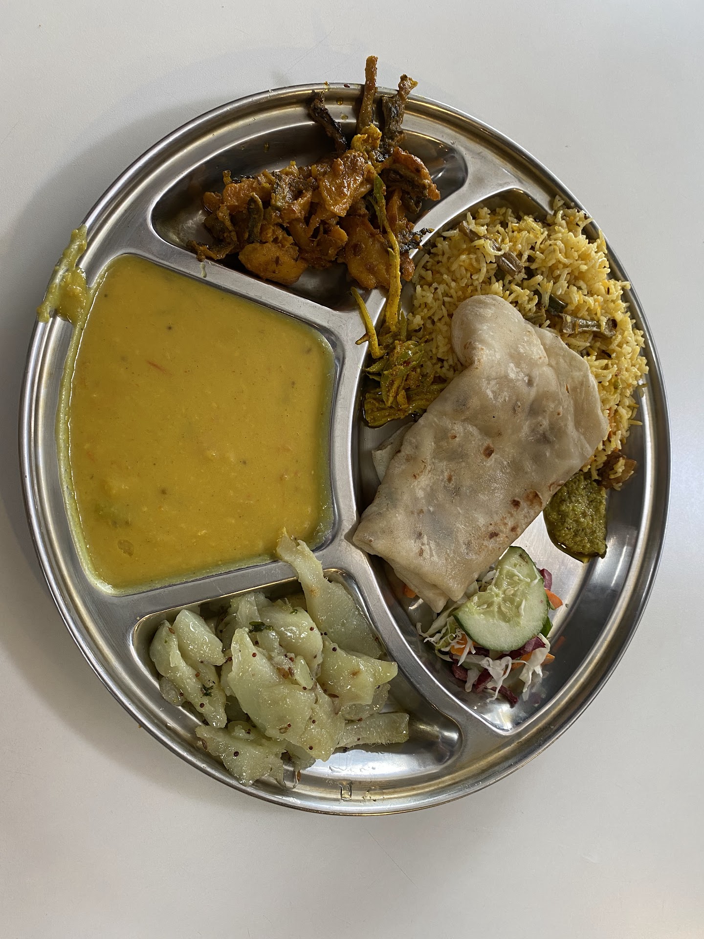 Great vegan options - it seems to be different every time I come. Some of the best fillings so far: soya mince in tomato sauce chayote touffe chickpea curry banana peel curry sweet potato puree thing (this is a guess, I'm not sure what it was! But it was 10/10)