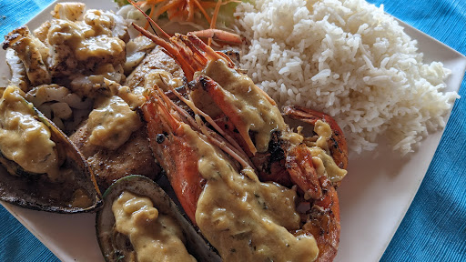 From the moment we sat down, the âfriendlyâ owner swooped in â Not to welcome us, but to push specific (and overpriced) menu items onto us. Feeling pressured, we went with his recommendations: 10 mussels (1600 MUR), 4 king prawns (1600 MUR), and a fish (1000 MUR).