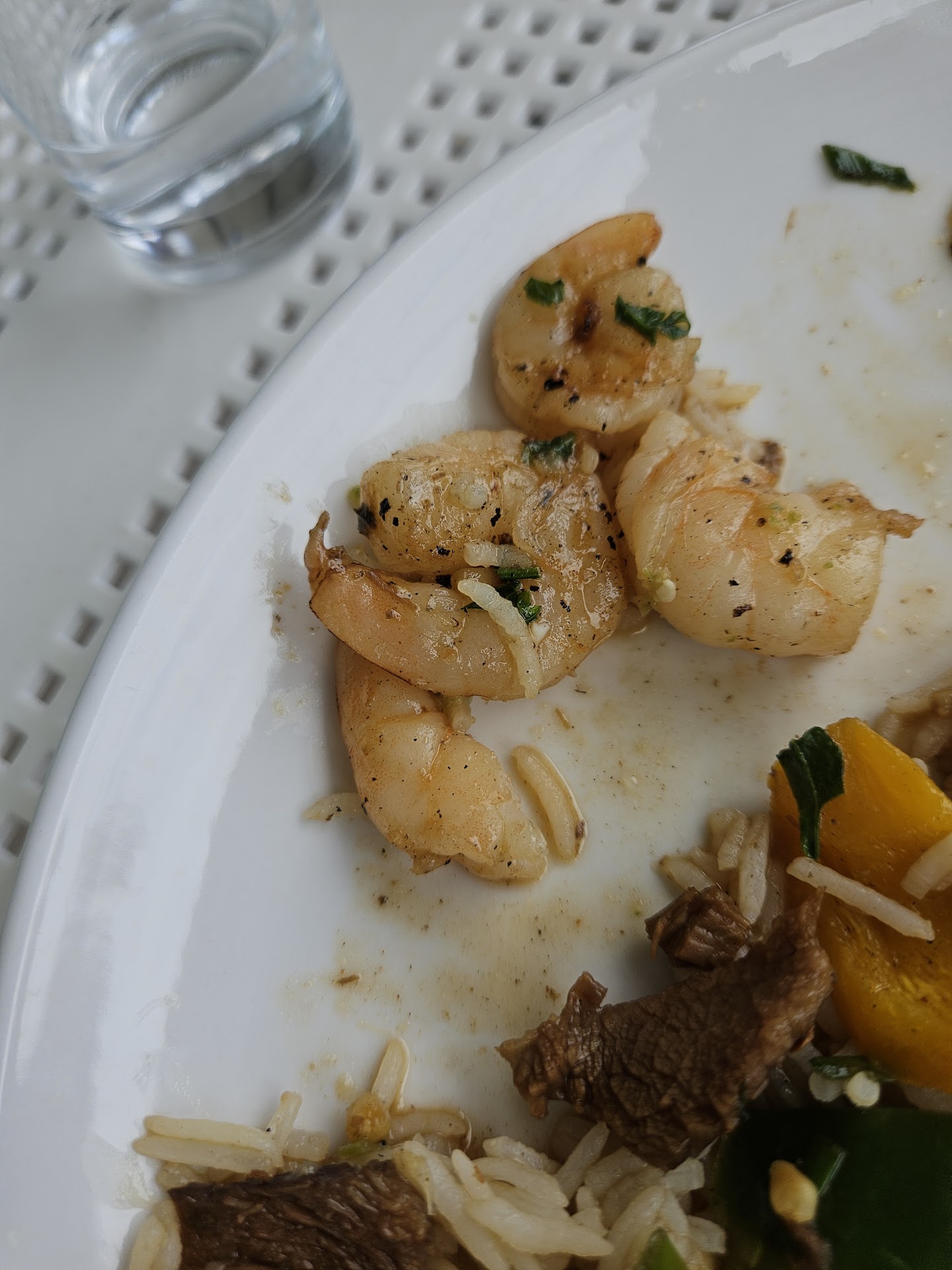 The atmosphere is a bit of a mixed bag. Indoors can get really loud, especially when the big fans kick inâit feels more chaotic than cozy. We usually prefer sitting outside, which is quieter and faces the road, but it comes with a trade-off: flies in the day, and mosquitoes in the evening that occasionally fall onto the table. It can get really frustrating when youâre trying to enjoy your meal.