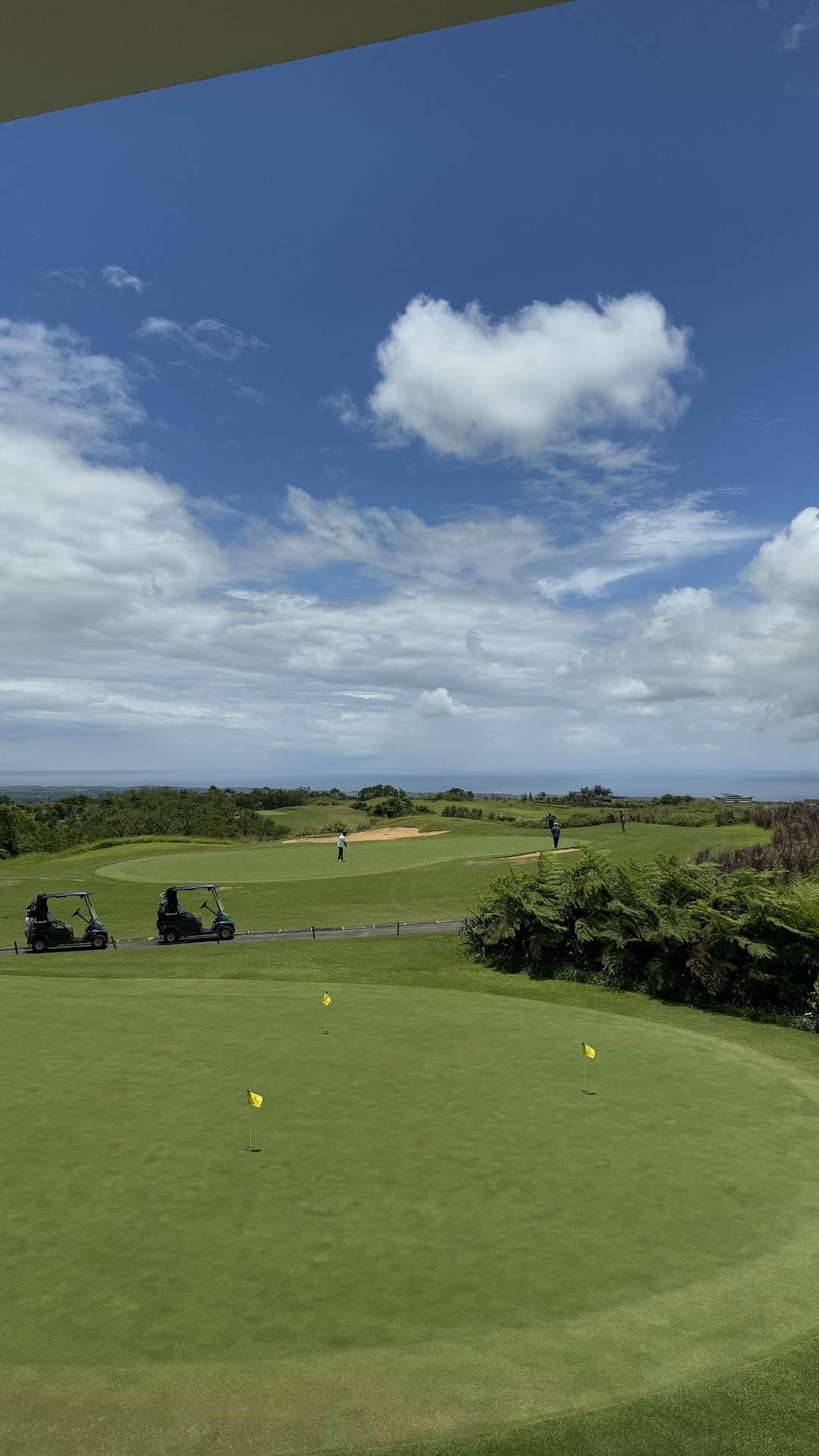 The views are spectacular from the restaurant of the golf course and coast in the distance.