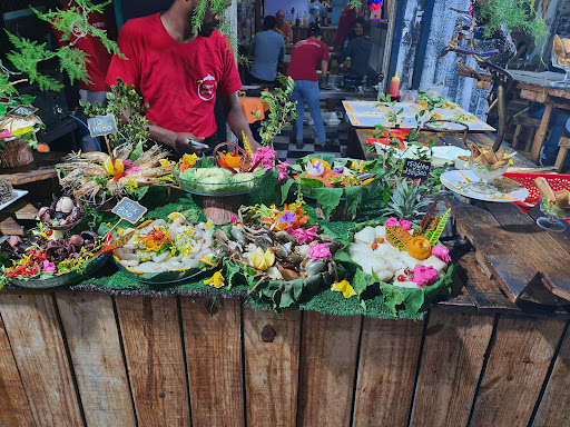 Read moreA really excellent dining experience if you want grilled seafood in a vibrant urban style setting. The service was great, there is a drinks list, but no menu. You are taken to see what is on offer displayed in two chilled glass cabinets. Everything is served with the same side dishes of chips, rice, vegetables and garlic bread. You just have to choose from the kebabs (prawns, tuna, chicken mixed etc) or the lobsters and whole fish available. You can see your food being grilled on an open barbeque. You will also be shown a selection of starters to order to eat while you wait for your main to be cooked. Service was good, attentive, but not too much and not intrusive. Our prawn, tuna and chicken kebabs were excellent, nicely cooked stewing with quite delicate seasoning. I would have liked to have had a spicy option or a chilli sauce, but I suspect the locals and French visitors prefer milder flavours. There was a mix of customers with children and families enjoying dinner. Not cheap, but good value for the quality of the food and service. Worth visiting if only to look at the range of sea food in the...