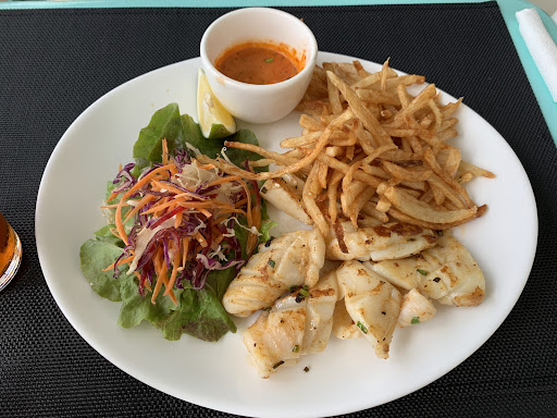 Read moreView is nice but food portions were tiny and over priced. Our mains were starter sizes. I had the seafood gratin which had very little seafood in, was mostly cream and cheese. I asked the waitress if the gratin came with potatoes and she said no it doesn't because the potatoes in Mauritius are not good. But then she said they can specially make me potatoes as an extra side if I want. I found this very strange because the gratin was a small portion in itself, so for it to be served without any potatoes or chips normally, it would be a starter portion. My partner had the main portion of calamari which also didn't come with chips and there wasn't much calamari on the plate. Again was more of a starter size. The salad on the plates was just plain lettuce with dressing. Not...