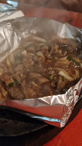 Additionally, the portion sizes were inadequate. The fried rice, which we ordered twice, tasted inconsistent, and y'know what-one portion of fried rice plate contained 'only' four pieces of shrimp. The sautéed lamb was also unsatisfactory, with an unpleasant odor suggesting it might have been leftover food. The sautéed garlic shrimp dish had only 'six' pieces.