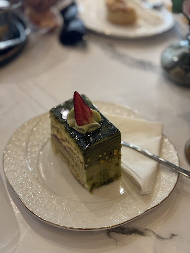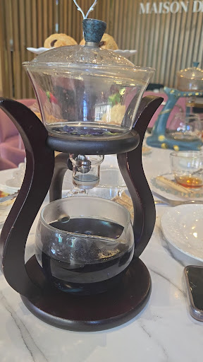 Maison de Thé is a delightful spot that I would highly recommend to anyone who enjoys delicious food, warm service, and of course, premium tea. The atmosphere is vibrant yet cozy, with soft pink and teal chairs, warm wooden accents, and a beautiful floral ceiling décor that makes the place feel very inviting. It’s also centrally located in Telfair with ample parking, making it easy to access. The service was excellent from the moment we arrived. The lady at the counter was very friendly and guided us through the different tea options. She even let us smell the blends and asked about our preferences, whether we leaned more towards milk tea or not, before making suggestions. This thoughtful approach really stood out and made the experience more personal. We ordered jasmine tea, pistachio cake, and cheesecake. The jasmine tea was light, aromatic, and refreshing. The pistachio cake was moist, flavorful, and not overly sweet, while the cheesecake was rich, creamy, and perfectly balanced. The waiting time was short, and everything was served beautifully, with attention to detail. If you’re a tea lover, this is definitely a must-visit. The premium tea selection and the original way it’s served make Maison de Thé a unique and memorable experience. I will definitely...