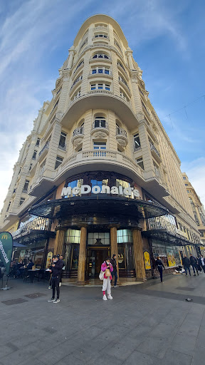Read moreThis is by far the most beautiful McDonalds i have visited, the one at "La Gran Via in Madrid. Amazing marble floors, the stairs to the second floors are really pretty, it looks like one of those stairs in a Mansion or even a castle, excellent attention from all staff, and fast service getting the orders out, i got mine in 5 minutes. The place is spot clean, and a staff member is always cleaning all areas where the customers are eating. The view of "La Gran Via" from the second floor is just amazing. In addition, like almost all McDonalds here in Madrid, you will find a "Mc Cafè Shop" which is a Coffee Bar inside the Mc Donals where you can get a latte, Capuccino, Cafe con Leche, Cortadito, and have some delicious desserts. Be aware that this Mc Donalds is in a prime location so is always packed with tons of people from everywhere, so it is not exactly a place to relax, never quiet. I Love ...