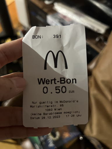Read moreMy girlfriend and I went to this McDonalds to get a ice coffee and needed to wait in line, since they didn't have one at the ordering machines. After we paid, we needed to get it from McCafé area, but the ladies working there told us it wasn't possible since they had no ice anymore. They sent us back to the line to get our money back. We waited again in line and the guy looked at us funny and took some ice in a cup and went back to McCafé area with us. Once we got there, magically our ice coffee appeared, even before the guy gave them the cup with ice. We took a sip and it was the worst drink ever. They probably simply put everything they had left in a cup and said it was ice coffee, but it felt like one of those drinks at collage parties where you mix too many drinks in a cup. Horrible experience! It is simply the audacity to actually request money for such a misery of a drink that made us very mad. It tasted like sewage water. Also when we asked what was inside the drink, the ladies at McCafé looked at us with disgust, saying that is ice coffee. We know this was simply a lie, since we always get ice coffee...