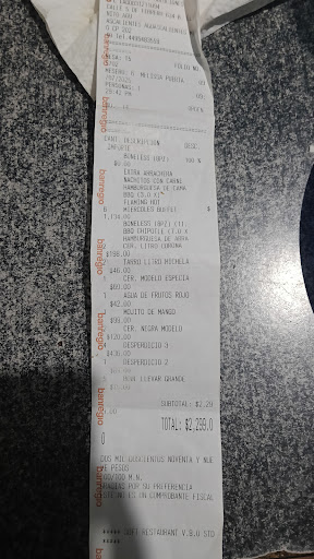Comida: lo que no te dicen del "buffet" es que en realidad no es un buffet, es un menú pagado, no te dejan elegir lo que quieres, ya viene pre determinado y no te lo dicen hasta que llegas ahi, alas, boneless y burger o wrap, pero no puedes cambiarlo, si no quieres alitas y quieres más de otra cosa, en el "1er tiempo" te lo tienes que comer a fuerzas, y a partir del segundo puedes pedir ya "lo que quieres" pero para ese momento ya te sientes mal por comer forzadamente lo que no quieres o te cobran un exceso según "lo que ellos consideran" que dejaste de porción. Las alitas, crudas, horribles de sabor, feas de textura y SALIO UNA PLUMA, la hamburguesa más cruda que cocida, y el tiempo que dice en la carta que se tardan no es, se tardan casi 1hr en servir (y eso que eramos solo 1 mesa). De todo te quieren cobrar extra, todo cuesta como si surtieran de calidad cuando todo lo que sirven es mediocre / malo.