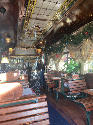 Café Tranvía Aguascalientes sucursal Calle Gral. Barragán está ubicado en la plaza comercial "Barrio Centro" y es una bonita cafetería con el estilo de los antañeros vagones de tren de pasajeros. Aunque es un pequeño espacio es sumamente pintoresco y un lugar tranquilo para disfrutar de una crepa, rebanada de pastel o de un delicioso chocolate de la casa cubierto con malvaviscos (especialmente en época de navidad). El ambiente del sitio es familiar aunque yo lo recomiendo más para personas de 35 años a más dado que es un lugarcito que por sus características pide a los comensales el cuidado de sus espacios para la conservación. Visualmente será placentero sentarse en las bancas del interior para ver las luces y la decoración ó en la parte exterior en su pequeña explanada para escuchar la selección musical que va del pop al jazz, observar el diseño exterior, el arreglo de sus luces y lindas Fogueras. A partir de Enero del 2021 su horario es de las 15:00 a las...