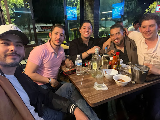 El lugar es amplio, los meseros están muy al pendiente y muy amables. Todos los días tienen botana (tipo comida) obviamente te la sirven dependiendo el consumo, pero a parte tienen lo básico cómo es cacahuates, palomitas, papitas etc. Yo fui en domingo y me dieron tacos de cochinita pibil y de lechón 🤤. Se divide como en dos secciones, en la parte de adentro si se escucha la música algo elevada, tiene terraza y ahí es menos ruidoso como en mi caso que quería estar platicando. Yo no fumo pero vi que dejaban fumar en la parte "cerrada", Así que también me fue conveniente estar en la terraza. Tiene unas pantallas enormes y se ven muy bien para los que nos gustan los deportes. Los precios adecuados al lugar y las bebidas...