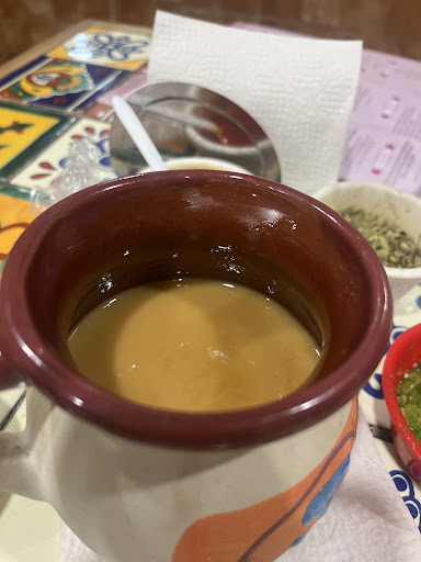 Read moreFue la primer vez que asistí a cenar a ese lugar ya que era "muy recomendado"...a lo que fue una descepcion total para ya no volver. En primer lugar al momento de llegar ni siquiera limpiaron la mesa, nos dejaron platos de los comenzá les anteriores, estuvimos más de media hora esperando a que nos atendieran y el trapo con el que limpian las mesas🤮. Tienen preferencia por algunos clientes, ya que mientras esperábamos a que nos llevara mínimo la carta de menú atendieron a otras personas que llegaron después de nosotros🤨. Los tacos de papa NO SON DE PAPÁ SON DE REPOLLO, pues abrí el taco para darle la papa al mi niño y no encontré ni rastro de papa lo que vi fue repollo cocido🤨 y sin sabor. Los 2 meseros que tienen para las 20 mesas que tiene solo van de un lado a otro sin organización alguna. 5. Es muy tardado su servicio, en el tiempo que estuvimos esperando a que nos atendieran, algunas personas mejor se iban porque no los atendían. Así que si quieren esperar casi 1 hora para que los atiendan vayan, pero yo no lo...