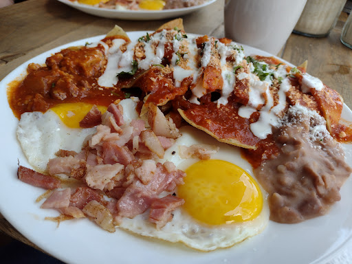 Read more¡Sorpresivamente delicioso! El lugar es pequeño pero muy bonito, todo está muy limpio, el mesero muy amable y atento, la comida llegó pronto y del sabor uffs que les cuento enserio me encantó todo muy rico, los costos en verdad que estan súper accesibles, de entrada me llevaron un cóctel de frutas con miel y granola, después llegó el plato fuerte chilaquiles con crema y quesito , dos huevos estrellados con tocino , chicharron con salsa y frijolitos seguimos con un cafecito americano y pan dulce del día, cuando me terminé mi cafecito me dieron un refill sin costo. ¡Amé este lugar, si se los recomiendo mucho no se van a arrepentir 100% garantizado en total...