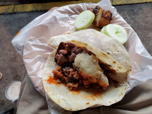 Read moreQue rico comer en este lugar!!! La atención es de nivel, el servicio es súper rápido! Venden unos tacos espectaculares con una carne exquisita, y los acompañan con un rico puré de papas, y con frijoles que tienen nivel, cebolla dorada recién salida del comal, además les puedes poner los aderezos que quieras porque tienen un carrito aparte dónde puedes escoger salsas, chile, cilantro y cebolla... Demasiado buenos! Los recomiendo 100% Para tomar tienen aguas y refrescos Los precios moderados.. No tienen una edificación, es un carro bien aseado y cuidado, con algunas sillas para sentarse a comer. Está bien ubicado y puedes tomar un taxi para ir y volver a tu casa. Si tienes vehículo propio, te puedes estacionar en los alrededores sin problemas. En fin, no pueden dejar de ir.. Ah, se me olvidaba, es la mejor opción si no puedes...