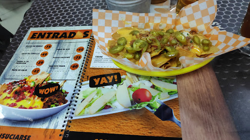 Read moreEn general lugar caro con pocos buenos platos, le pregunté al mesero que cual cerveza preparada llevaba clamato, no me supo contestar, (primero me dijo todas y luego se quedo pensando, así de mejor pregunto) ya que me dijo cual era, se tardó bastante en traerlo, y para el colmo sabía a puro clamato con agua. Queria unos nachos y le pregunte al mesero que que les ponían, no me supo contestar, solo me dijo, así como los ves en el menu!, Así son (ustedes juzguen) Cabe mencionar que ví las hamburguesas y esas si se veían decentes (relación costo plato), lo malo es que te dan...